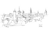 Kolorierte Karte der Spree mit Signets der Sehenswürdigkeiten (Originalgröße 220×100cm), 16 – 20 Skizzen der Städte