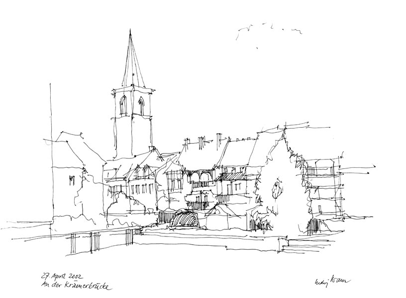Vogelperspektiven der Gesamtstadt (Originalgröße ca.180×160cm), der historischen Altstadt (ca. 100×100cm) und von Teilgebieten sowie ca. 40 Skizzen