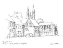 Vogelperspektive der Innenstadt (120×100 cm) in zwei Fassungen und Skizzen