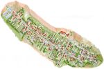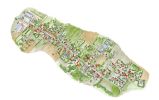 Landkarte der Gesamtgemeinde, Vogelperspektive der 6 Orte in farbiger und in grau-weiß gehöhter Fassung sowie rund 20 Skizzen