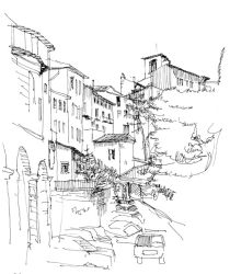 Todi/Umbrien Häuser am Hang 1991