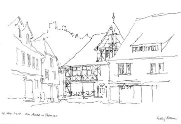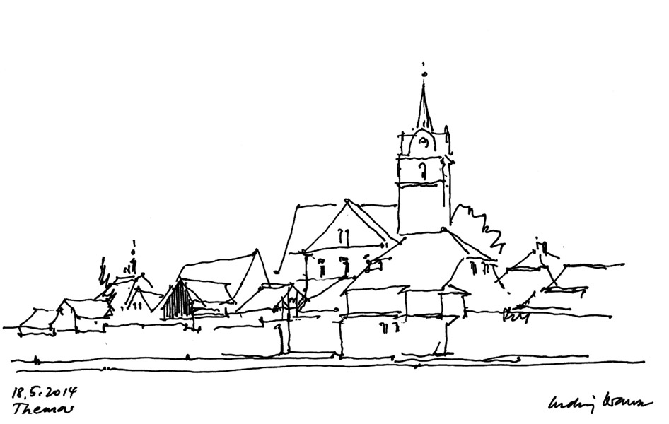 Ludwig Krause hat in Weimar studiert (bis 1966) und seit dieser Zeit Städte, Dörfer und Landschaften zu Fuß und mit dem Rad erschlossen. Die Erlebnisse sind in zahlreichen Skizzen festgehalten.