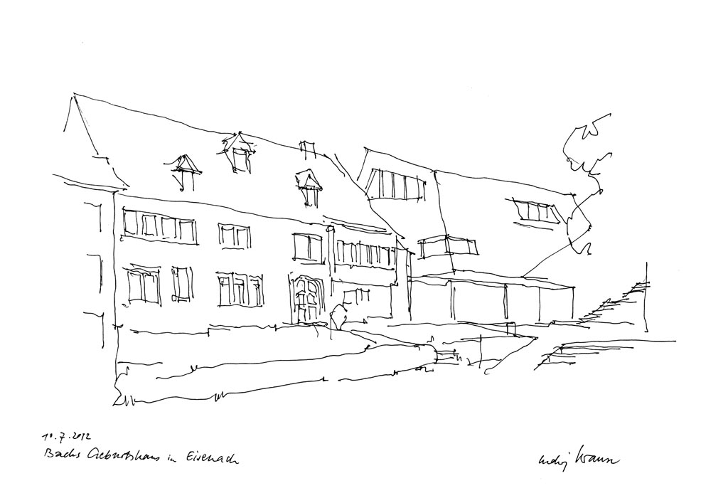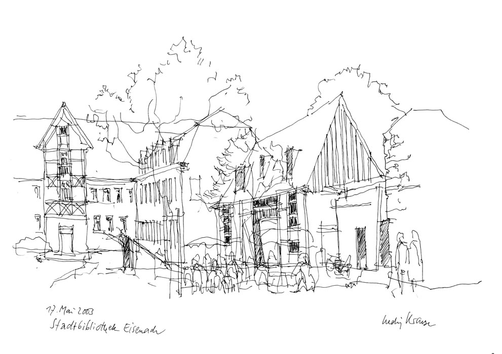Ludwig Krause hat in Weimar studiert (bis 1966) und seit dieser Zeit Städte, Dörfer und Landschaften zu Fuß und mit dem Rad erschlossen. Die Erlebnisse sind in zahlreichen Skizzen festgehalten.