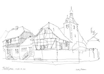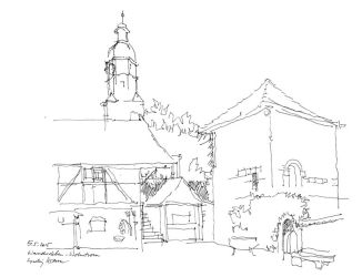 Mühlberg Taubenhaus mit Kirche 2015