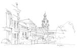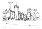 Kolorierte Karte der Spree mit Signets der Sehenswürdigkeiten (Originalgröße 220×100cm), 16 – 20 Skizzen der Städte