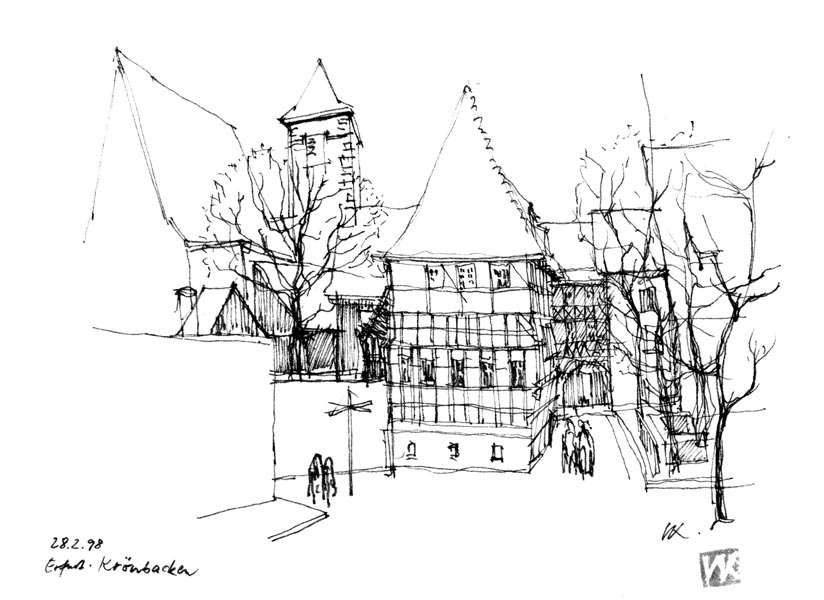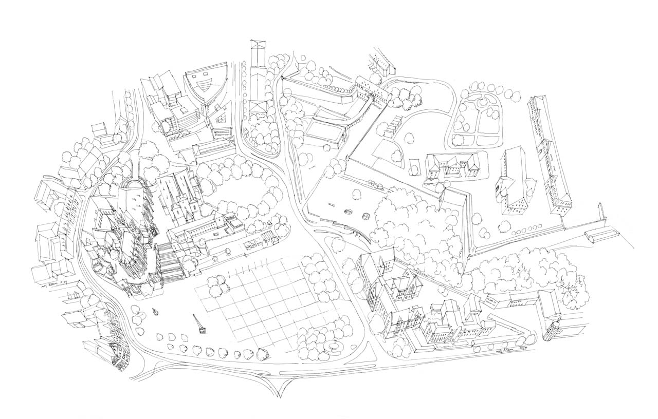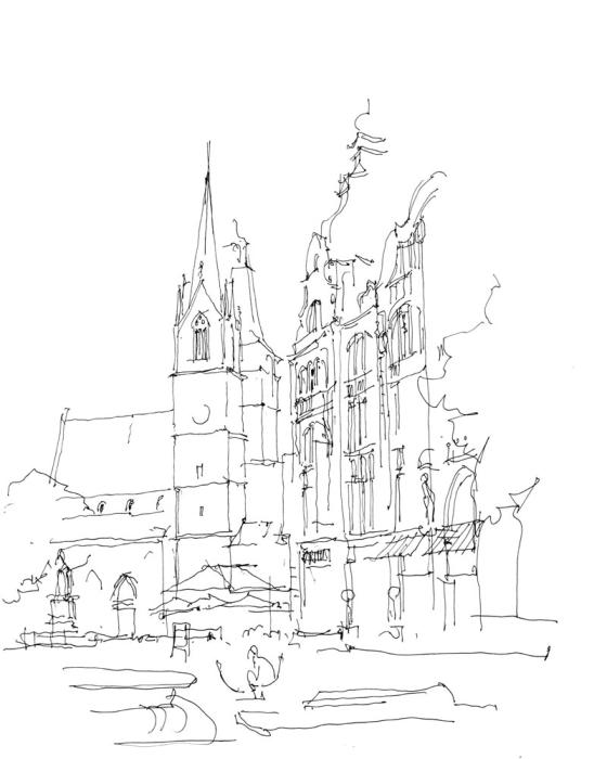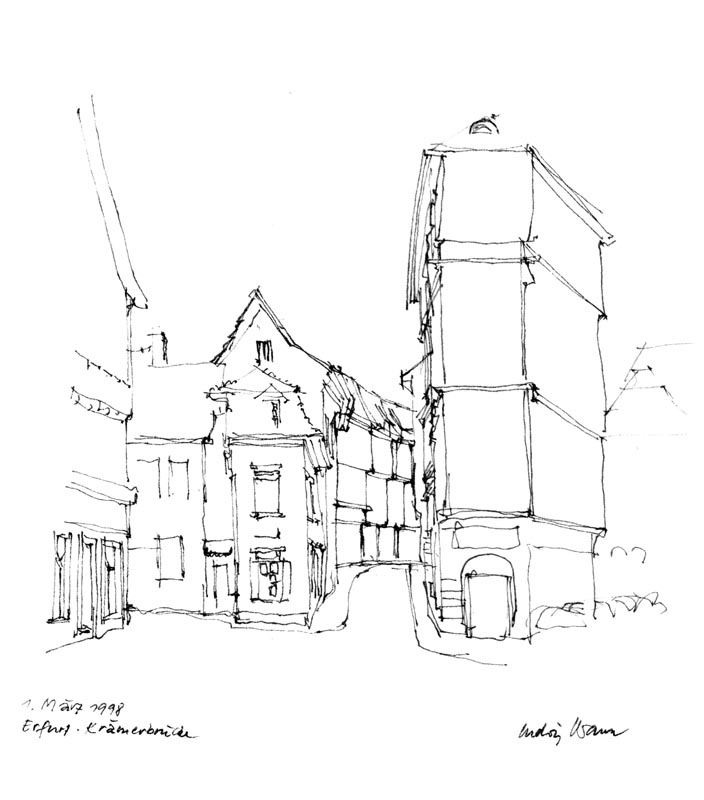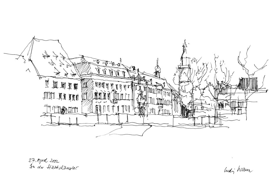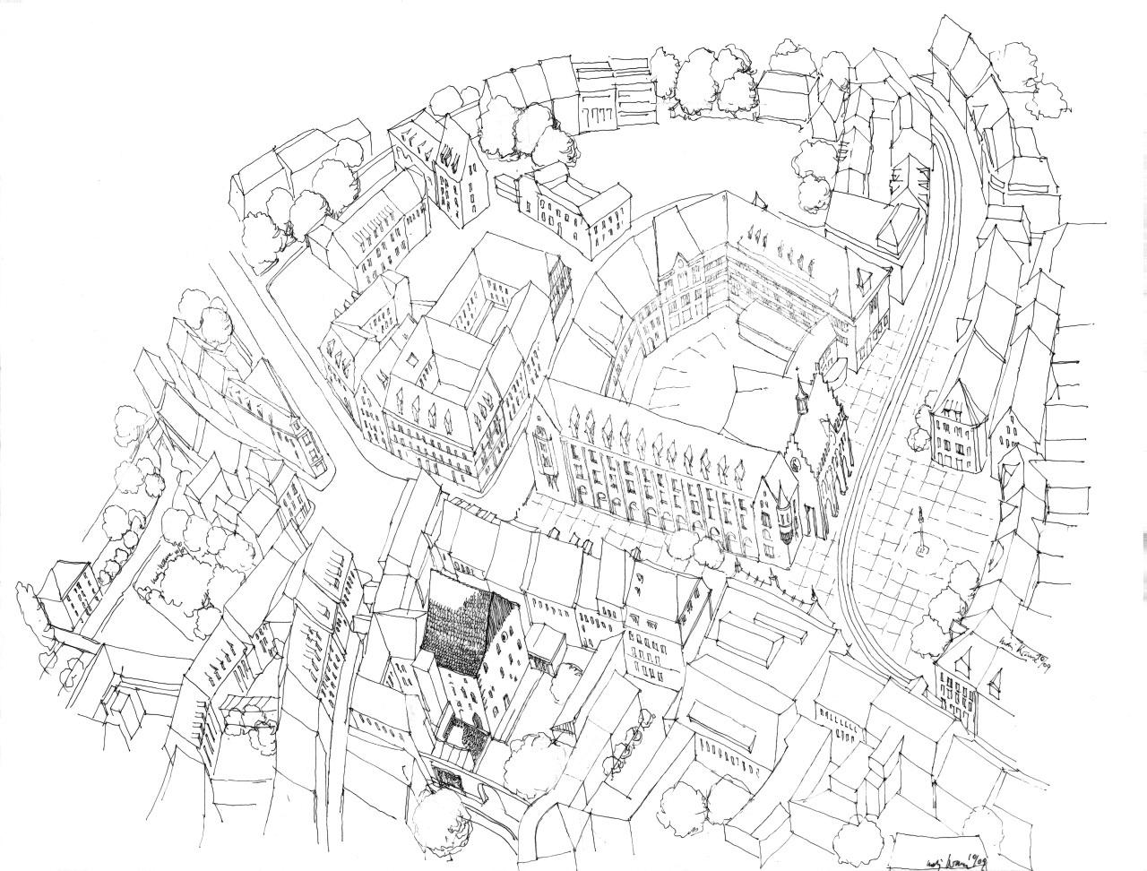 Vogelperspektiven der Gesamtstadt (Originalgröße ca.180×160cm), der historischen Altstadt (ca. 100×100cm) und von Teilgebieten sowie ca. 40 Skizzen