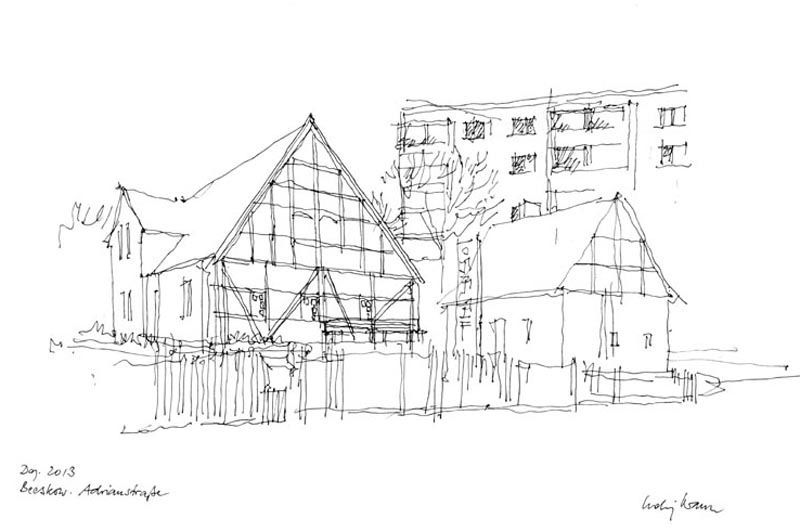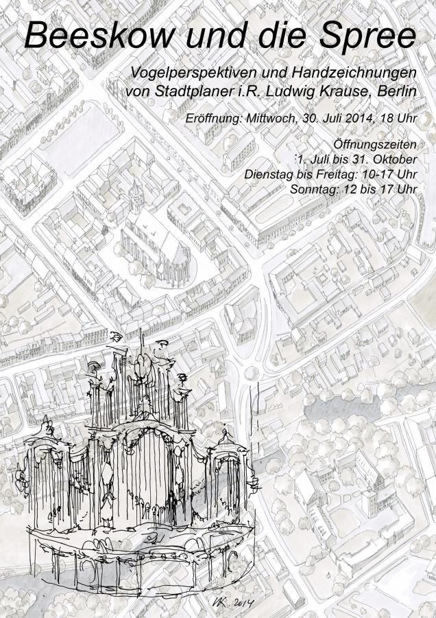 Vogelperspektive der Gesamtstadt (160×100 cm) und der Innenstadt (100×100 cm) in farbiger und in grau-weiß gehöhter Fassung