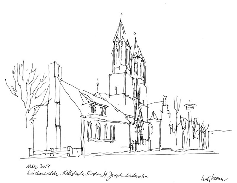 Vogelperspektive der Gesamtstadt (220 × 160 cm) und der Innenstadt (150×100 cm in farbiger und in grau-weiß gehöhter Fassung) sowie rund 40 Skizzen