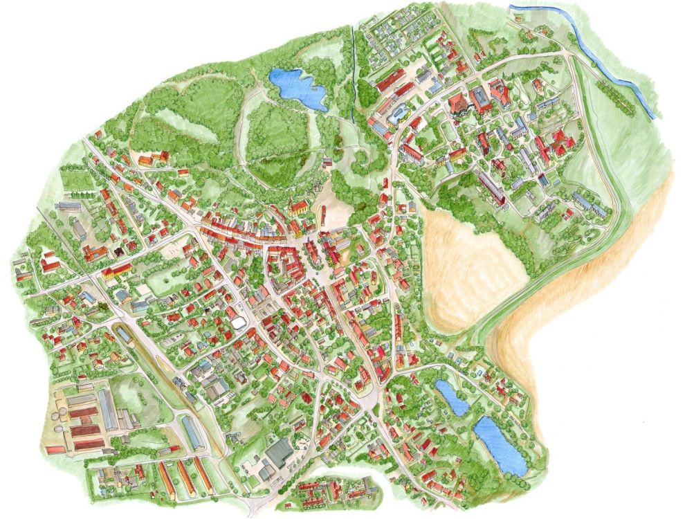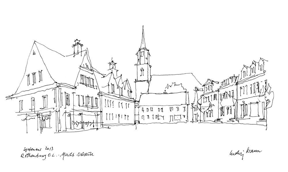 Vogelperspektive der Stadt (120 × 90 cm) und des Martinshofes (80 × 80 cm) sowie rund 30 Skizzen