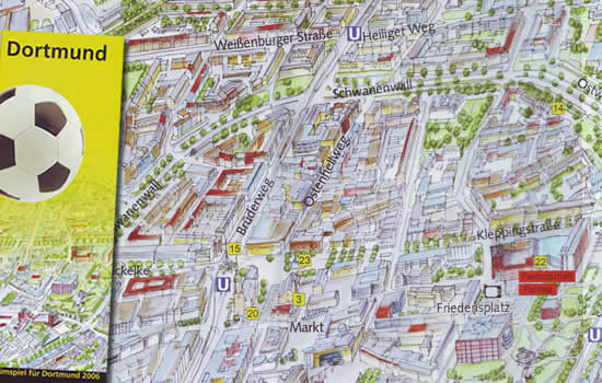 Aus Anlass der FIFA-Fußballweltmeisterschaft 2006 entstand im Auftrag der Stadt Dortmund der Stadtfalter zur Begrüßung der Besucher und Gäste der westfälischen Metropole in 8 Sprachen. Die Verarbeitung der Grundzeichnung für touristische Stadtwerbung ist vorgesehen.